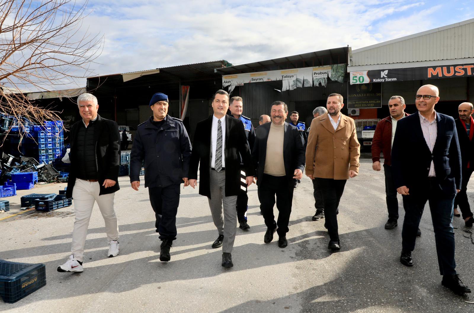 Hal esnafını tek tek ziyaret ederek sohbet eden Kaymakam Öztürk; ticari faaliyetler, ürün sevkiyatı ve sezon durumu hakkında bilgi aldı. Esnafın istek ve taleplerini dinleyen Kaymakam Öztürk, iletilen konulara ilişkin çözüm önerileri üzerine istişarelerde bulundu.